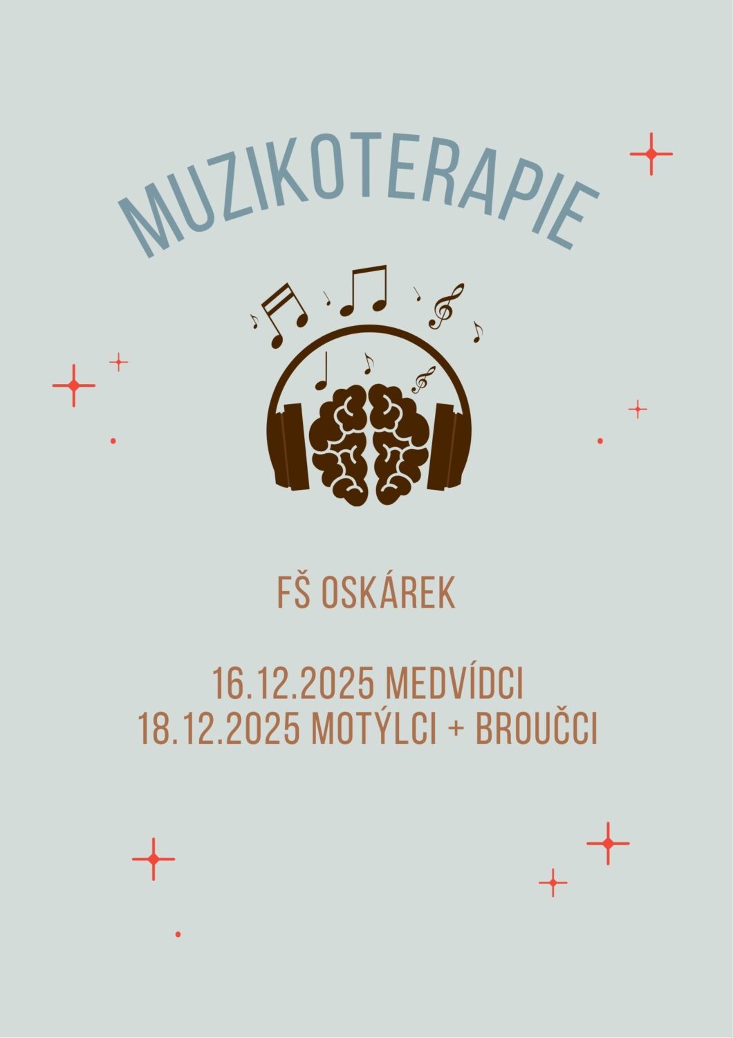 V úterý dne 18.12.2025 proběhne MUZIKOTERAPIE pro třídu Motýlků a Broučků od 9 do 10 hodin.